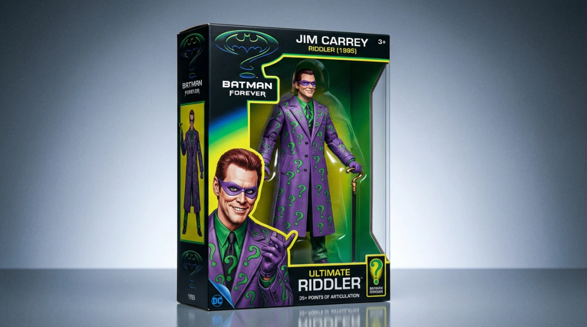 Before you choose a figure, it helps to remember the character you’re capturing. Batman Forever’s Riddler is loud, flashy, and theatrical, played with manic energy.